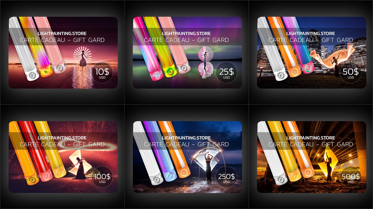With Christmas coming up, I decided to activate the Gift Card module on Shopify (on lightpainting.store).